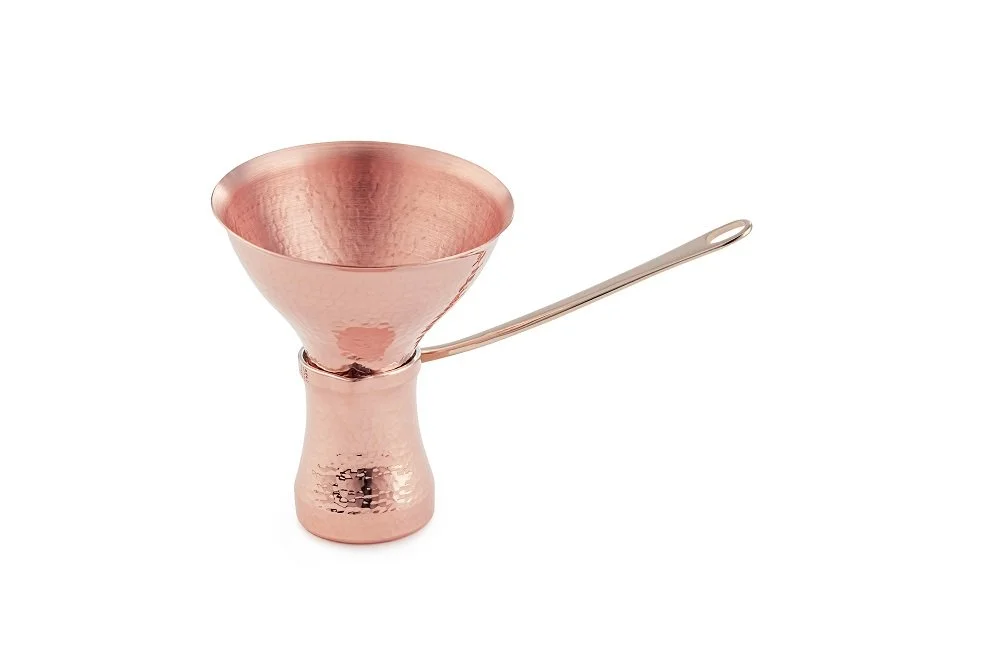 A solid copper Soy funnel made-to-measure for our cezves, a must for any person or istitution with a grinder and a set of Soy Cezves.